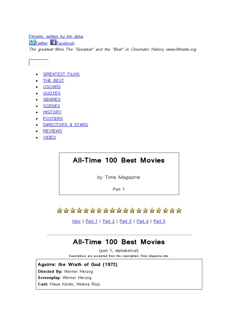 Best 100 Movies By Time Cinema Entertainment Award