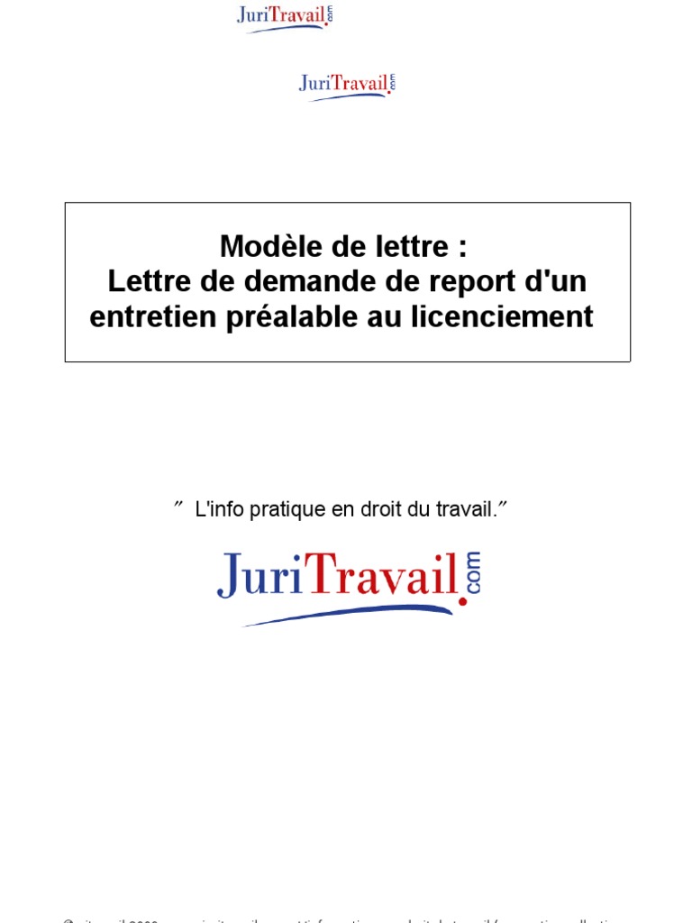 Lettre Demande Report Entretien Prealable Licenciement Droit Prive Politique