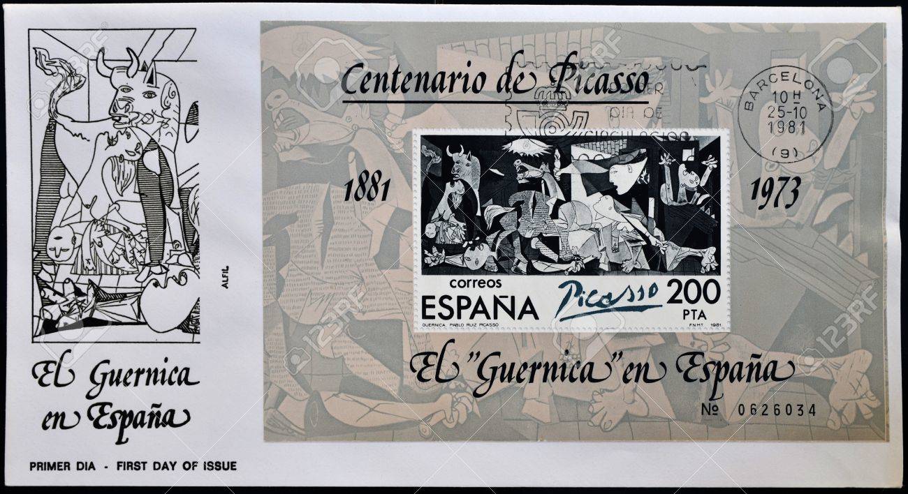 スペイン - 1981 年頃: パブロ ・ ピカソ「ゲルニカ」、1981 年頃問題の最初の日絵画スペイン ショーで印刷スタンプ の写真素材・画像素材 Image 11071565.